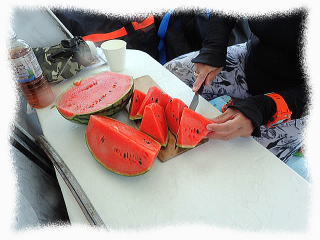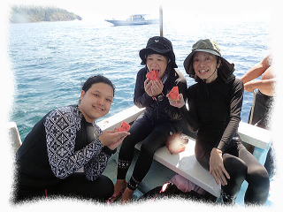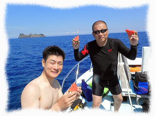 (ダイビング後は冷え冷えのスイカを頂きました!)